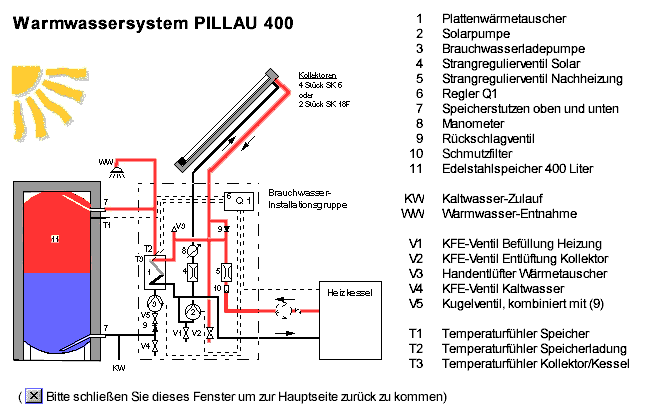Mit der PILLAU 400 ist ein innovatives und energetisch optimiertes Warmwassersystem mit Speicher besonders für den Einsatz in Solaranlagen mit Die Stiftung Warentest bestätigte dem Gesamtsystem eine sehr gute energetische Rücklaufzeit von nur 1,9 Jahren und der Senat der Freien und Hansestadt Hamburg würdigte die Entwicklung mit dem dritten Platz des von ihm vergebenen Innovationspreises 1994. |